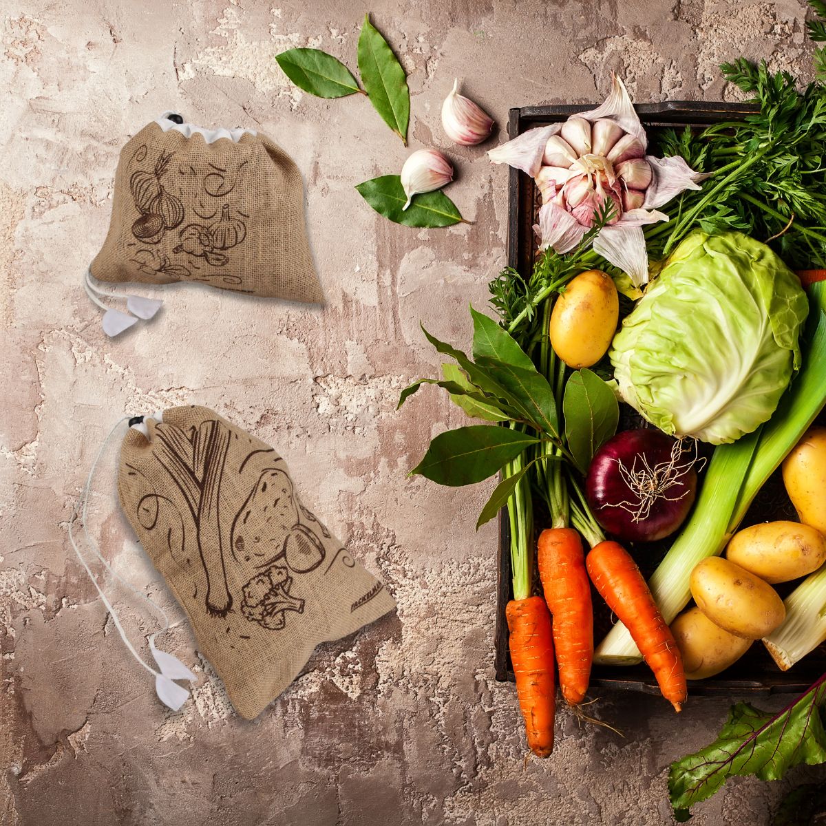 - Ensemble de 2 sacs à provisions en toile de jute pour y glisser des légumes, des fruits et autres aliments lors de votre journée de courses