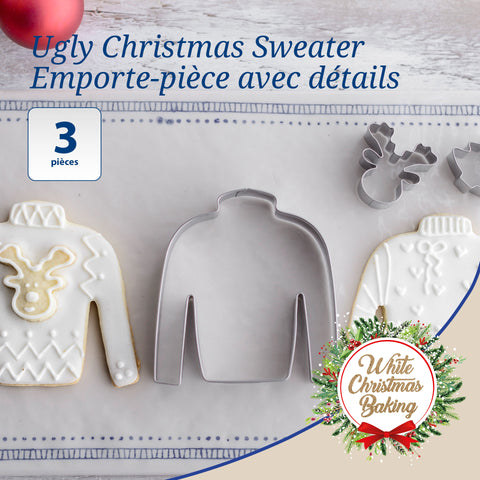 L'ensemble d'emporte pièces "Ugly Christmas Sweater" de Dr Oetker vous permet de réaliser aisément des biscuits originaux dans l'esprit de Noël. Vous y trouverez trois emporte-pièces que vous pouvez utiliser simultanément ou séparément, un pull, un sapin et un élan. Ces petits biscuits raviront les plus gourmands.