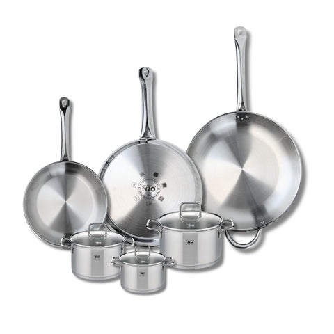Découvrez l'ensemble de 3 poêles de cuisson et 3 faitouts Elo Profi Citrin, une batterie de cuisine polyvalente et robuste, idéale pour tous vos besoins culinaires.