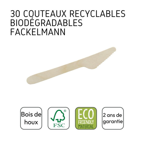 Découvrez notre lot de 60 couteaux en bois jetables Fackelmann. Ces couverts en bois certifié FSC sont parfaits pour vos pique-niques et événements.