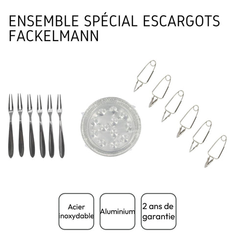 Fackelmann vous propose cet ensemble pour la cuisson et la dégustation des escargots. Le plus souvent assaisonnés avec du beurre persillé, beaucoup s'en régalent lors des fêtes de fin d'année.