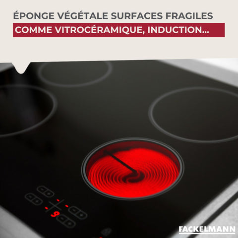 Cette éponge végétale Fackelmann Tecno est adaptée aux surfaces fragiles comme les tables vitrocéramiques, les vitres, les crédences en verre, les vitres d’insert/poêle, ainsi que les semelles de fer à repasser.