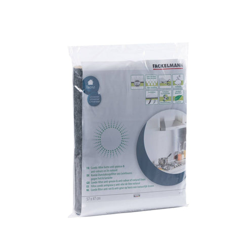 Exigez l'excellence avec le filtre combiné pour hotte Fackelmann. Sa double épaisseur en fibres naturelles végétales et en charbon actif lui confère des propriétés de filtration bien plus importantes qu'un filtre lambda.