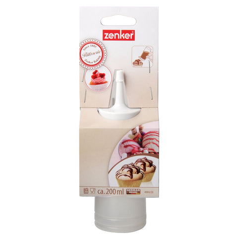 Zenker vous propose ce flacon en plastique souple avec un embout fin pour décorer vos créations. Le flacon a une capacité de 200 ml. Dans cette bouteille de décoration vous pouvez y placer du chocolat, du sirop, du coulis de fruit, des sauces… afin de réaliser toutes vos recettes ! Vos préparations culinaires n'auront jamais été aussi bien présentées !