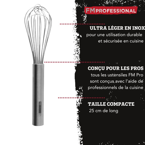 Le fouet FM Professional en acier inoxydable de haute qualité est idéal pour battre vos sauces, crèmes et pâtes. C'est un fouet polyvalent et de qualité professionnelle.
