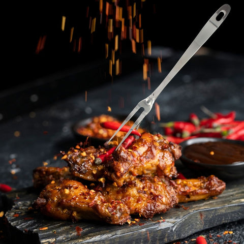 La fourchette à 2 piques est un ustensile de cuisine utile pour couper de la viande très épaisse comme un rôti, une côte de bœuf, de la palette etc. Cette fourchette inox est aussi adaptée pour le barbecue.