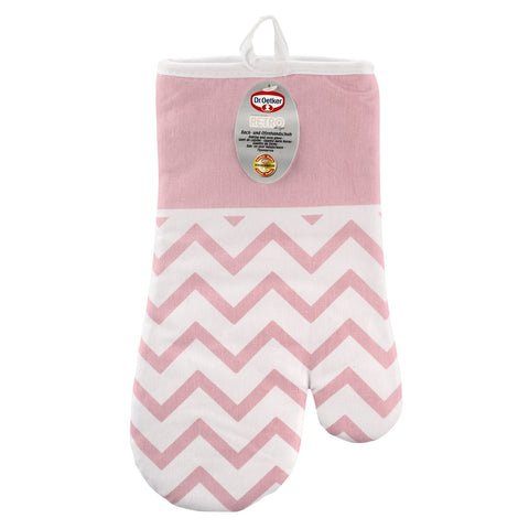 Le gant de cuisine est un indispensable dans votre cuisine, Dr Oetker vous en propose une version rétro et design. Il protège de la chaleur jusqu'à 250°C pendant au moins 15 secondes. Le gant de four Dr Oetker est composé de deux faces, la première rose pâle et blanche, la seconde grise et blanche. Confortable et élégant, il est compatible avec un lavage à la machine à laver (température maximale de 40°C sans détergents ni agents blanchissants).