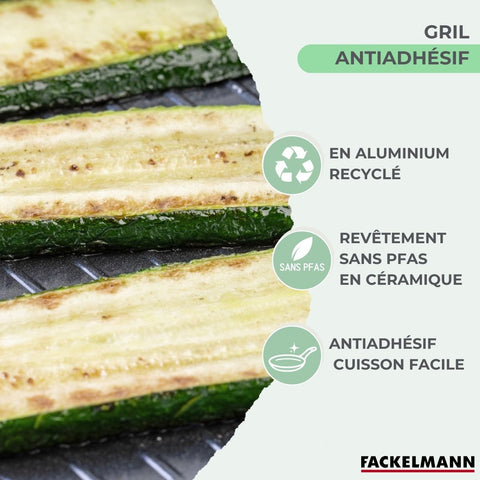 Gril 28 cm aluminium revêtement céramique antiadhésif sans PFAS Fackelmann Brandao