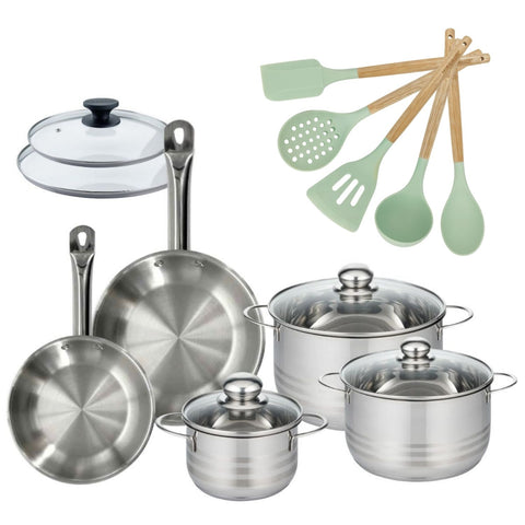Découvrez notre ensemble Fackelmann incluant 3 faitouts en inox de 16, 20 et 24 cm, ainsi que 2 poêles de 20 et 24 cm. Complété par 5 ustensiles de cuisine , cet ensemble est parfait pour tous vos besoins culinaires.