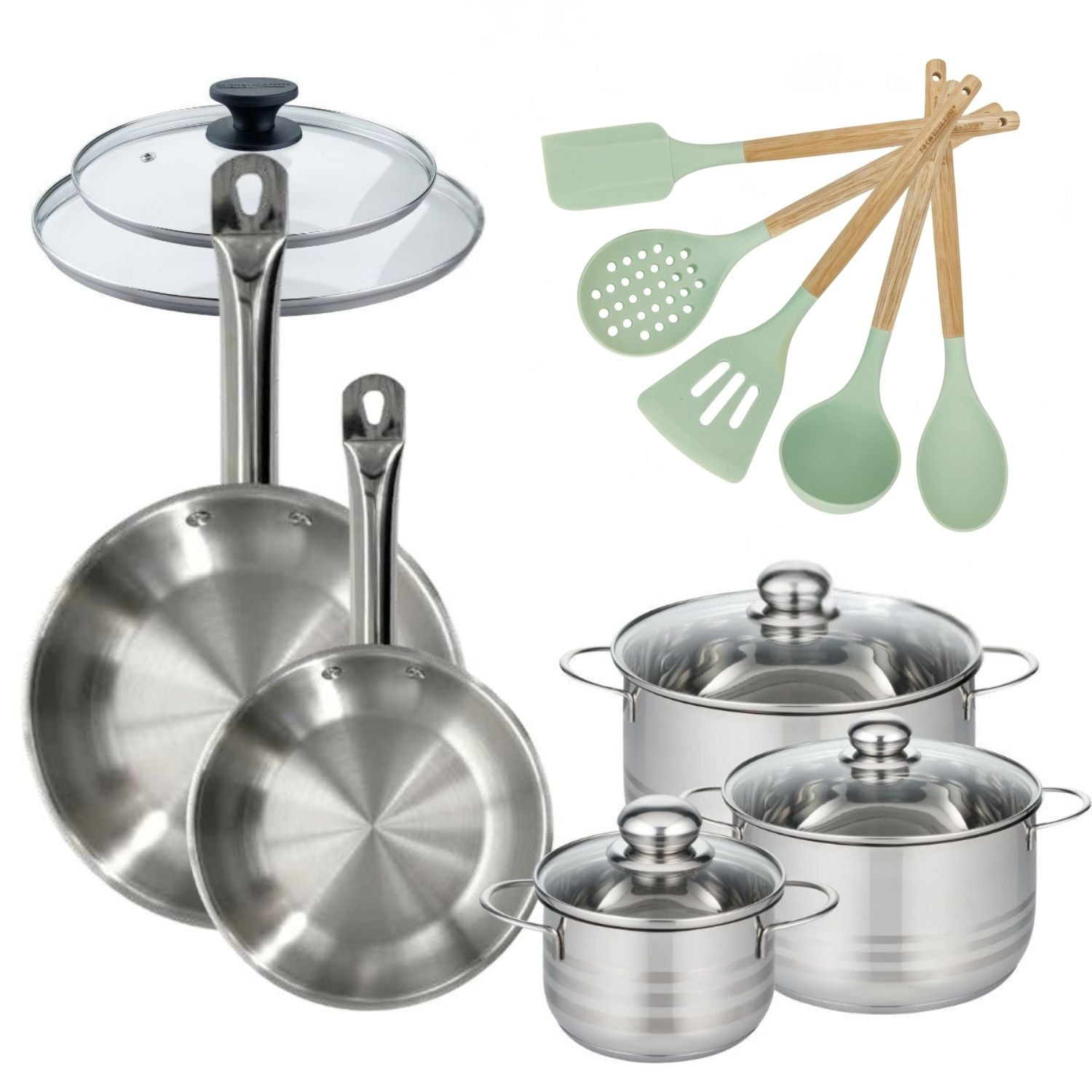 Découvrez notre ensemble de cuisson Fackelmann avec 3 faitouts en inox et 2 poêles, accompagné de 5 ustensiles pratiques. Une cuisine simplifiée.