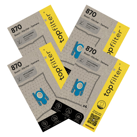 TopFilter, fabricant français de sacs d'aspirateurs, propose ce lot de 4 packs de 4 sacs aspirateur pour Bosch et Siemens, soit 16 sacs. Le sac aspirateur doit être changé tous les 3-4 mois, à savoir quand il est rempli.