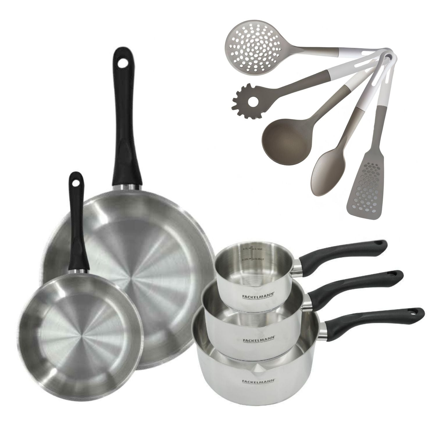 Optimisez votre cuisine avec cet ensemble Fackelmann Geneva, comprenant casseroles et poêles en inox pour une cuisson homogène, accompagnées de 5 ustensiles ergonomiques.