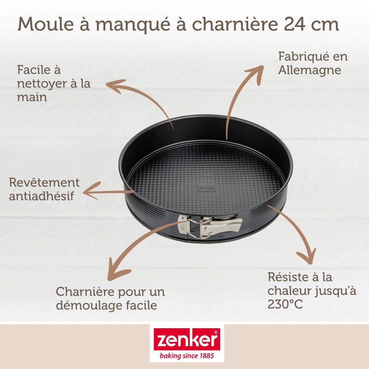 Zenker est spécialisée dans la fabrication de moules et accessoires de pâtisserie pour accompagner tous les amateurs de pâtisserie dans la préparation de leurs recettes. Les moules Zenker sont très pointus et spécialisés soit pour la pâtisserie, soit pour la cuisine. Ils permettent de cuire tout type de plat. Avant même d'enfourner un gâteau, il est nécessaire de le préparer et pour cela, Zenker a tout prévu : des collections d'ustensiles très malins pour garantir un résultat gourmand.