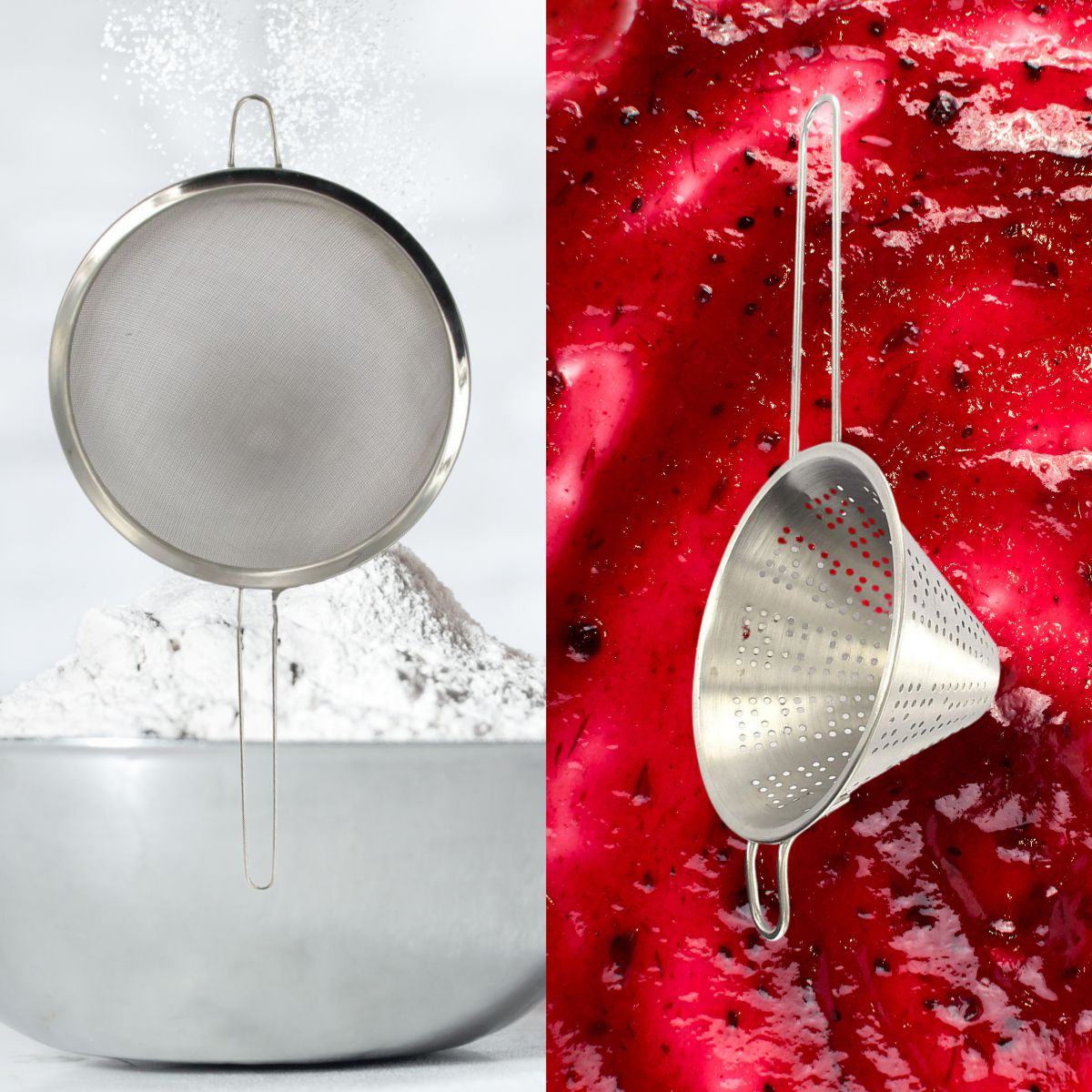 Le chinois conique, avec son design élégant et fonctionnel, est parfait pour tamiser les sauces fines, les confitures et les coulis. Sa forme conique permet une filtration efficace, éliminant les grains et pépins indésirables. La passoire en inox, quant à elle, est idéale pour filtrer les jus de fruits, les coulis et les pulpes, assurant une séparation optimale des liquides et des solides.