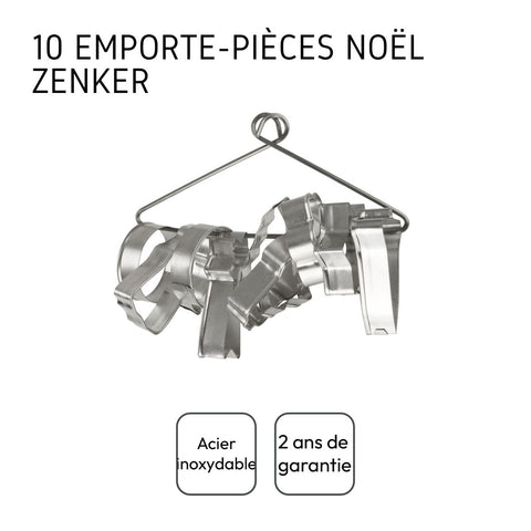 Les emporte-pièces de Zenker sont par 10 et attachés par un cintre que vous pouvez garder pour les ranger. Les motifs des emporte-pièces sont aléatoires et variables, allant des formes basiques emporte-pièce rond, étoile, fleur à des emporte-pièces plus sophistiqués : emporte-pièces de Noël, cannelés, formes détaillées etc.