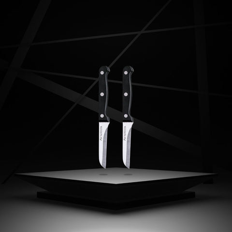 Le Lot de 2 Couteaux à légumes Nirosta MEGA représente un choix incontournable pour toute personne cherchant à simplifier la découpe et l'épluchage de légumes et de fruits en cuisine. Dotés d'une lame en acier inoxydable Nirosta, ces couteaux incarnent la durabilité et la qualité qui sont le fruit du savoir-faire inégalé de la coutellerie allemande.