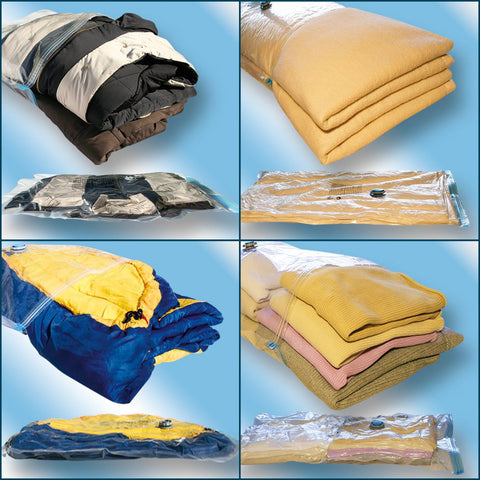 Les sacs de rangement sous-vide proposés par Fackelmann sont idéaux pour optimiser la place dans vos placards et ranger vos affaires encombrantes (pulls, literies, etc).