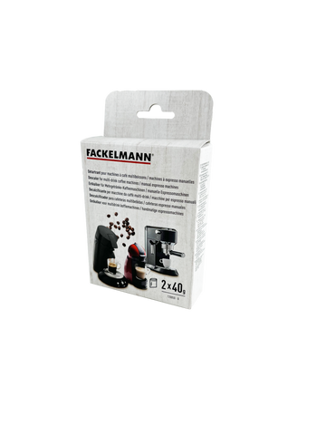 Fackelmann vous propose ce lot de 2 sachets de détartrant pour machines à café afin de leur rendre leur propreté initiale. Le détartrant en poudre est facile à utiliser et nettoie notamment le calcaire qui peut bloquer le bon fonctionnement de votre machine à café.