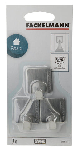 Lot de 3 crochets adhésifs carrés en acier inoxydable Fackelmann Tecno