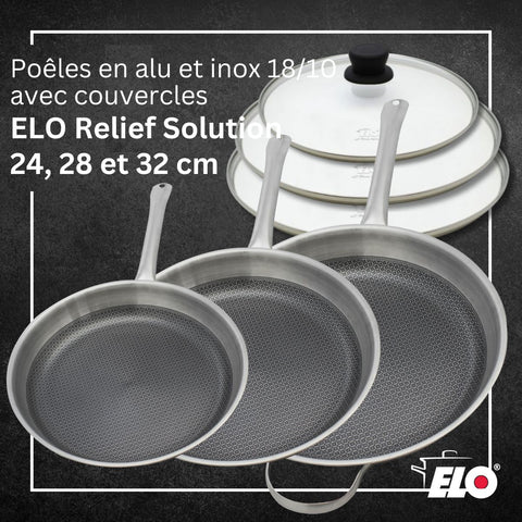 Lot de 3 poêles 24, 28 et 32 cm et couvercles Elo Relief Solutions sans PFAS