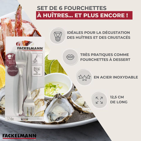 Ce lot de 6 fourchettes à huîtres Fackelmann en acier inoxydable est parfait pour manger vos huîtres et autres crustacés.