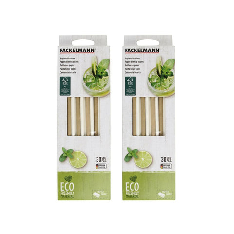 Fackelmann vous propose ce lot de 60 pailles en papier, composé de pailles blanches et de pailles brunes. Ces pailles sont très pratiques pour déguster vos boissons froides comme des cocktails ou même du jus de fruits. Ces pailles sont en papier recyclable et compostable ce qui en fait des pailles écologiques en plus d'être utiles.