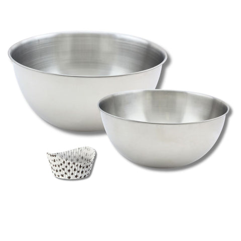 Découvrez ce lot de pâtisserie comprenant 50 moules à muffins en papier motif étoile, un bol à mixer inox de 25 cm, un bol à mixer inox de 20,5 cm, et une spatule en silicone de 25 cm. Parfait pour vos créations sucrées et salées!