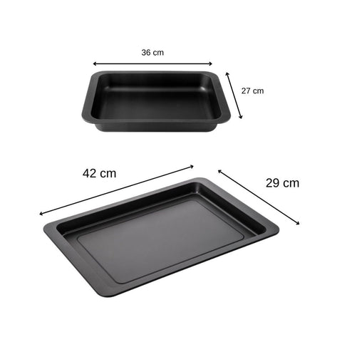 Cuisinez en toute liberté avec cet ensemble de deux ustensiles de cuisson Zenker composé d'une plaque de four de 42 x 29 x 2,5 cm ainsi que d'un plat de cuisson four de 36 x 27 x 5 cm. Ces deux accessoires de cuisson vous permettront de cuisiner simultanément plusieurs plats : dans le plat de four vous pouvez préparer un gratin, des lasagnes, un hachis Parmentier, des légumes rôtis et sur la plaque de four vous pouvez cuire une pizza, une tarte, des frites.