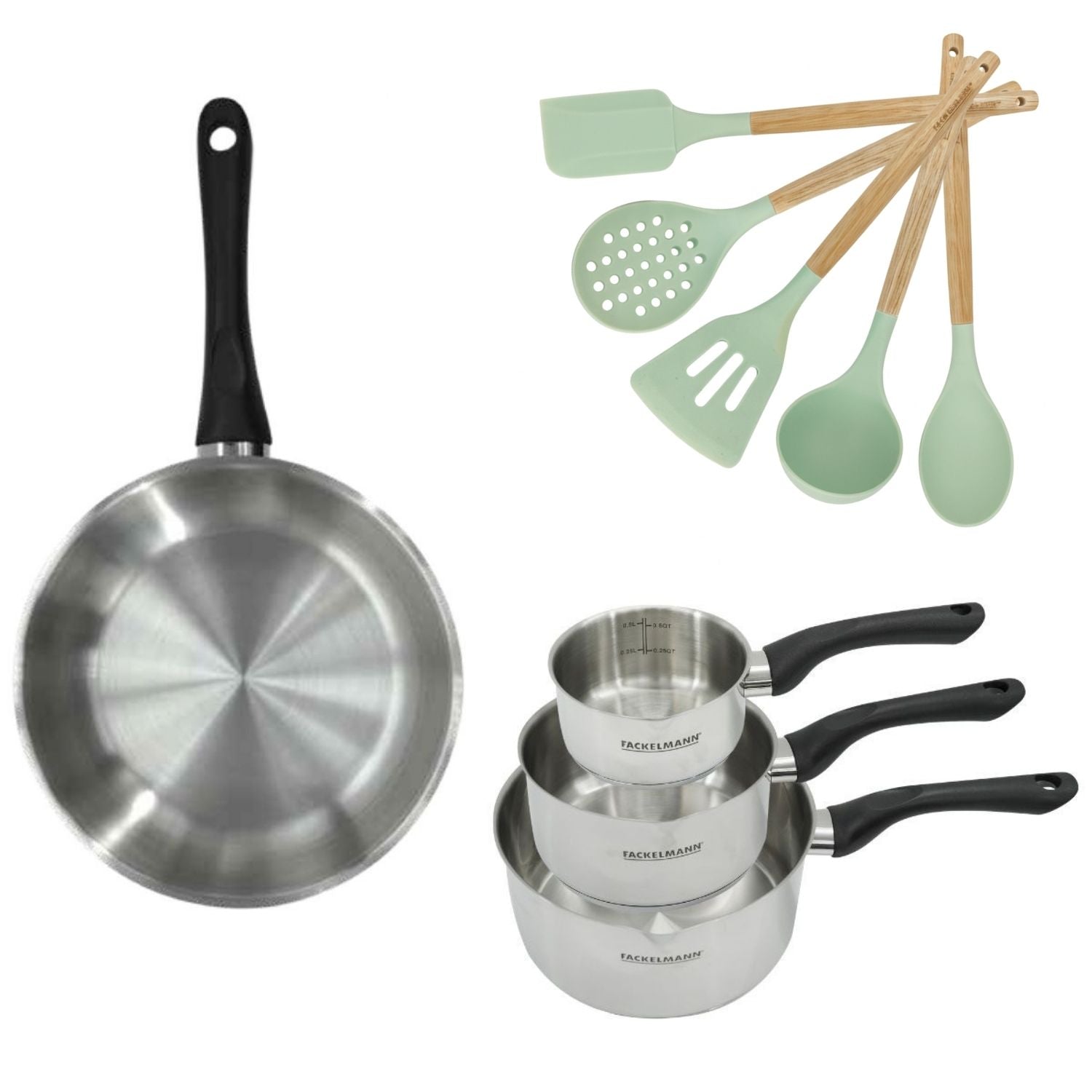 Lot Poêle 28cm et 3 Casseroles 12/16/20cm Fackelmann Généva avec 5 ustensiles