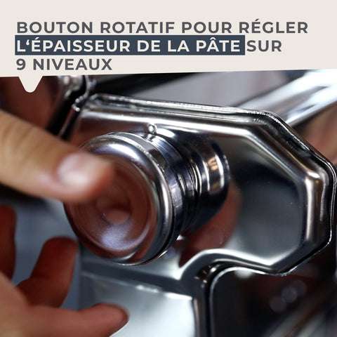 La machine à pâtes est un ustensile de cuisine extrêmement polyvalent, il vous permettra de faire des pâtes fraîches et de les aplatir plus ou moins. Vous pouvez choisir l'épaisseur de vos pâtes car notre machine à pâtes fraîches est réglable.