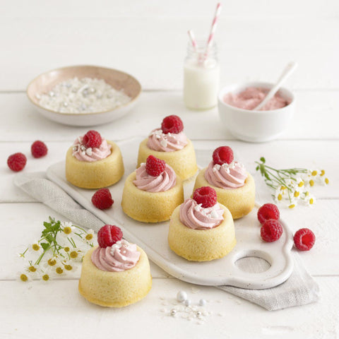 Dans notre moule à baba au rhum vous pourrez également réaliser d'autres petits gâteaux. Prenez une pâte à muffin et faites-la cuire dans ce moule à savarins, puis garnissez vos muffins avec du chocolat ou de la confiture et décores-les.