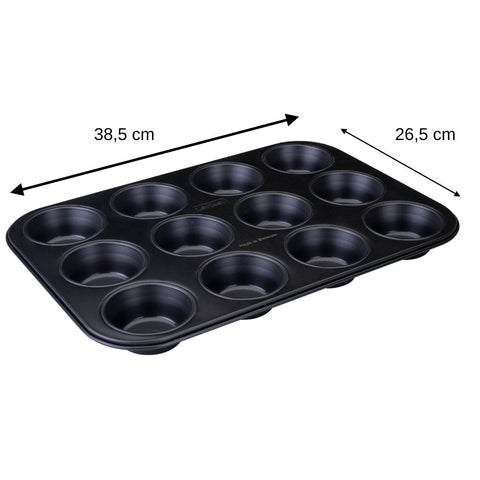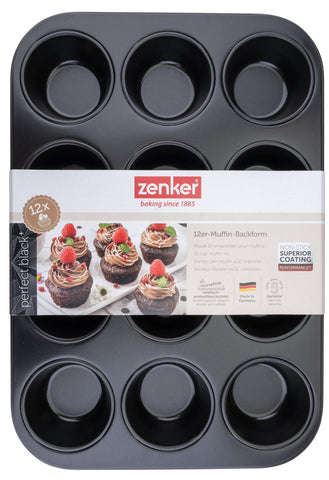 Découvrez la plaque à muffins Perfect Black de Zenker, idéale pour cuire facilement 12 grands muffins ou cupcakes. Son double revêtement antiadhésif assure un démoulage rapide. Résistante jusqu'à 230°C, elle est garantie 5 ans.