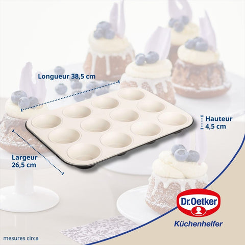 Le moule à muffins Exclusive de Dr. Oetker est l’allié idéal des amateurs de pâtisserie. Conçu en acier et doté d’un revêtement antiadhésif émail sans PFAS de haute qualité, il garantit une cuisson uniforme et un démoulage facilité.