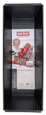 Découvrez le moule à cake 'Perfect Black' de Zenker, avec un double revêtement antiadhésif pour un démoulage facile. Sa finition métallique noir brillant et sa résistance à la chaleur jusqu'à +230 °C en font un choix idéal pour des gâteaux moelleux.