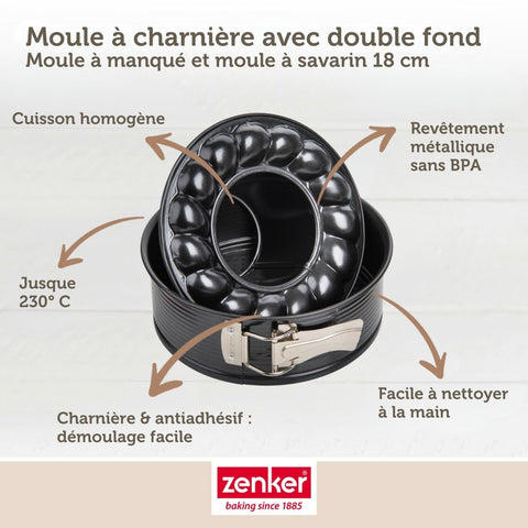 Le moule à manqué à charnière avec fond à savarin 18 cm Zenker Black Metallic est un ustensile de prédilection des amateurs de pâtisserie.