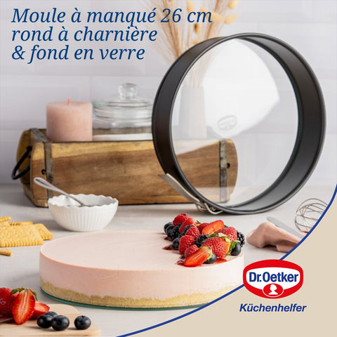 Le moule à manqué Dr Oetker avec charnière est idéal pour toutes vos recettes pâtissières. Grâce à son fond en verre, vous pouvez surveiller la cuisson et servir directement votre préparation sur son élégant plateau de verre.