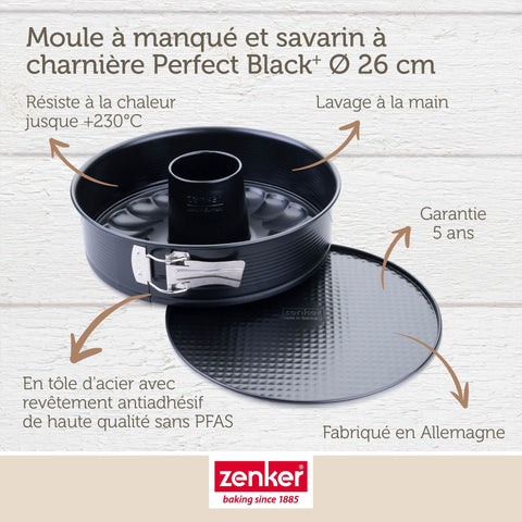 Découvrez le moule à charnière Zenker de 26 cm, parfait pour vos gâteaux ronds et fonds de tartes. Avec un revêtement antiadhésif sans PFAS et une garantie de 5 ans, il allie qualité et praticité.