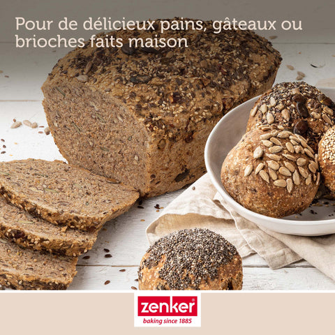 Zenker vous propose ce moule à pain ovale. Ce moule à pain est idéal pour ceux qui aiment faire du pain maison. Il vous permettra de cuire votre miche de pain ou votre pain de mie, mais aussi vos brioches et autres gâteaux.
