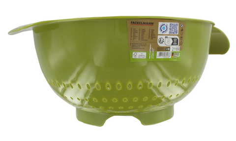 Fackelmann vous propose cette passoire en plastique de couleur verte avec deux poignées. La passoire est un ustensile de cuisine servant à laver des fruits et légumes ou à égoutter des aliments.