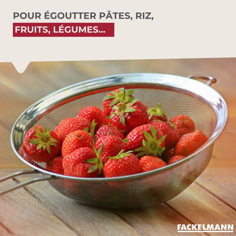 Découvrez la passoire Chinois Fackelmann de 16 cm, idéale pour tamiser les ingrédients en poudre, laver et égoutter les fruits et les légumes, rincer le riz... Fabriquée en acier inoxydable, elle allie robustesse et praticité.