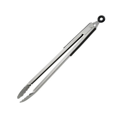 En acier inoxydable, la pince à barbecue possède une poignée plastique pour une bonne prise en main et un œillet à tirer ou pousser pour ouvrir et fermer la pince de cuisine, cela permet notamment de la ranger dans un tiroir à plat ou dans un pot à ustensiles.