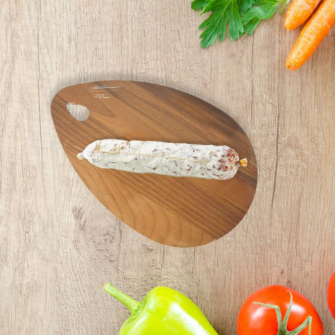 Sur cette planche à découper ovale et originale, vous pouvez présenter vos apéritifs, trancher du saucisson mais aussi couper des légumes ou de la viande.