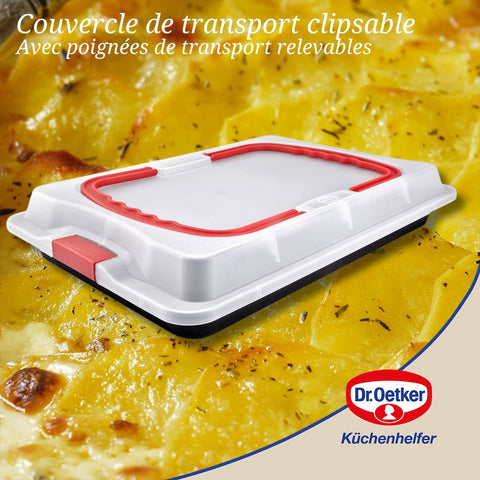 La plaque de cuisson avec couvercle Dr Oetker est parfaite pour la cuisson, le stockage et le transport de vos préparations.