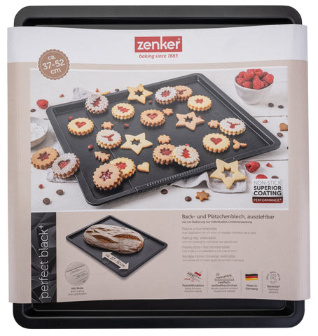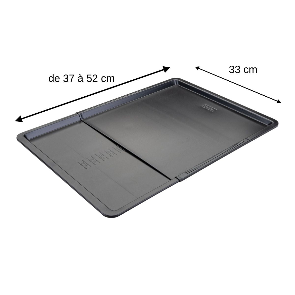 Découvrez la plaque de cuisson extensible Zenker, ajustable de 37 à 52 cm. Avec son double revêtement antiadhésif, vos préparations se démoulent facilement. Résistante à +230 °C et garantie 5 ans.