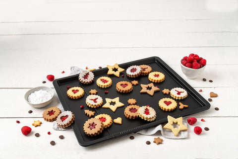 La plaque de cuisson extensible de Zenker, de la série « Perfect Black+ », est l'outil idéal pour vos créations culinaires. Fabriquée en tôle d'acier robuste, elle s'étend de 37 à 52 cm pour s'adapter à tous les fours. Son double revêtement antiadhésif sans PFAS assure un démoulage facile et un nettoyage simplifié. Résistante jusqu'à +230 °C, cette plaque est conçue pour durer et est accompagnée d'une garantie de 5 ans. Son design élégant en noir ajoute une touche moderne à votre cuisine.
