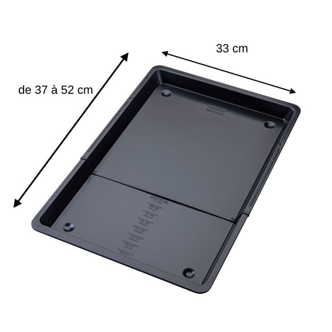 La plaque de cuisson extensible Zenker est le compagnon idéal pour toutes vos créations culinaires. Fabriquée en tôle d'acier robuste, elle s'ajuste facilement de 37 à 52 cm, s'adaptant ainsi à différentes tailles de four. Son double revêtement antiadhésif sans PFAS garantit un démoulage sans effort, tandis que sa résistance à la chaleur jusqu'à 230 °C assure des cuissons parfaites. Avec une garantie de 5 ans et un design élégant noir, elle allie fonctionnalité et esthétisme dans votre cuisine.