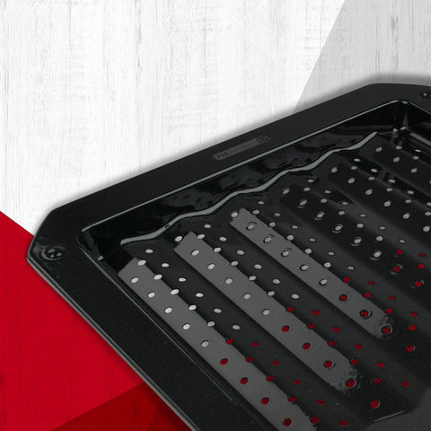Le barbecue n'a jamais été aussi facile avec cette plaque ondulée pour récupérer le jus de la viande ou des légumes et les trous pour laisser s'évaporer l'humidité. Posez cette plaque de four et de barbecue directement sur la grille du barbecue et disposez vos aliments pour les faire cuire : brochettes, poulet, steak, poisson, légumes…