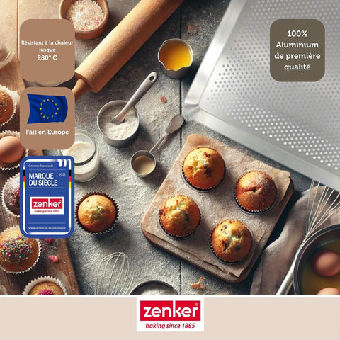 Zenker est spécialisée dans la fabrication de moules et accessoires de pâtisserie pour accompagner tous les amateurs de pâtisserie dans la préparation de leurs recettes. Les moules Zenker sont très pointus et spécialisés soit pour la pâtisserie, soit pour la cuisine. Ils permettent de cuire tout type de plat. Avant même d'enfourner un gâteau, il est nécessaire de le préparer et pour cela, Zenker a tout prévu : des collections d'ustensiles très malins pour garantir un résultat gourmand.