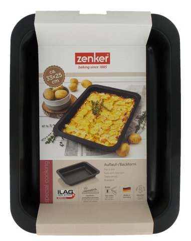 Zenker vous propose ce plat à four de forme rectangle vous permettant de cuire des plats au four tels qu'un gratin dauphinois, un gratin de chou fleur, un gratin de courgettes, des lasagnes etc. Les bords hauts du plat servent à garder la sauce de vos plats en sauce comme le poulet, la dinde, la palette à la diable etc.