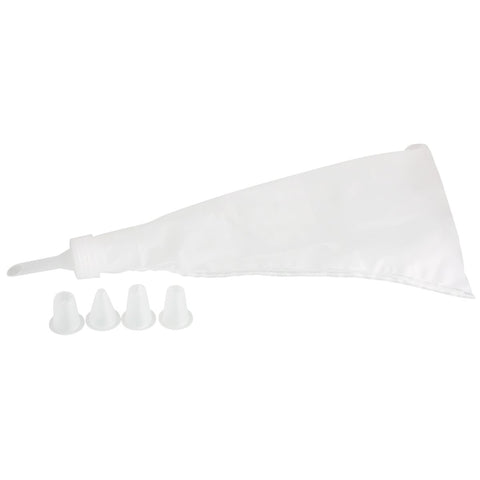 L'ensemble composé de poches à douille et de 5 douilles est idéal pour décorer et garnir gâteaux, tartes et cupcakes. Les buses en plastique (environ 3,5 cm) conviennent pour les petites fleurs, les étoiles, les lignes droites ou pour remplir des beignets ou des beignets avec de la confiture. Le sac (environ 28 x 14 cm) est fabriqué dans un matériau extra-résistant et peut être réutilisé pour la prochaine utilisation après le nettoyage.
